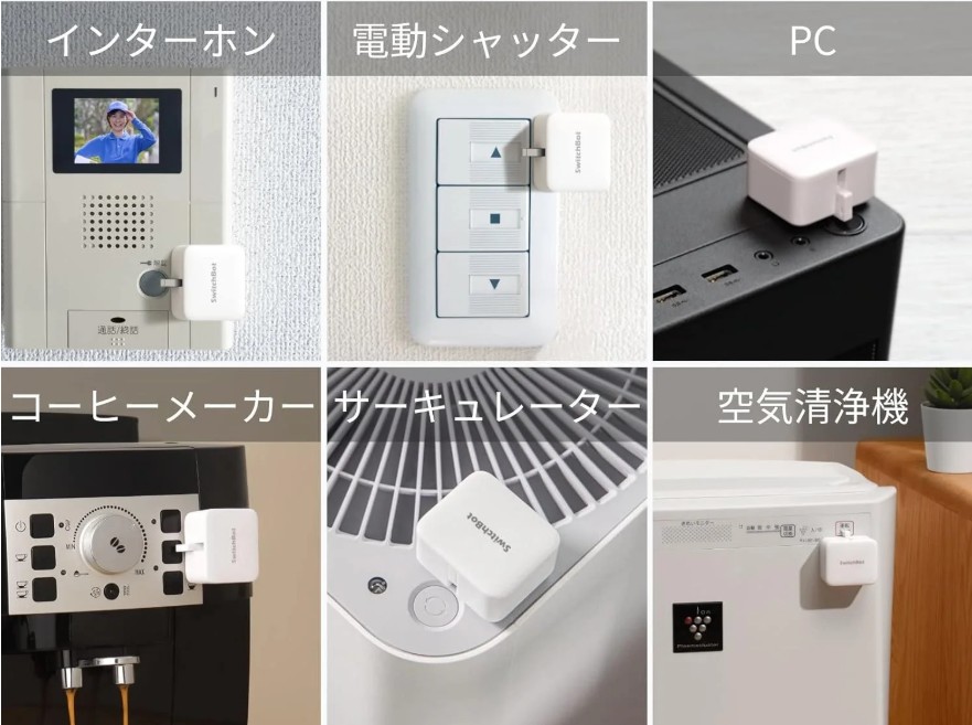 たとえば電気ポットや加湿器の電源ボタンにボットを設置し、起床時間の少し前に自動でオンにしておくといった使いかたができます。